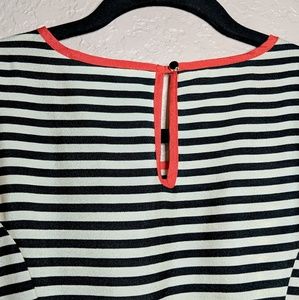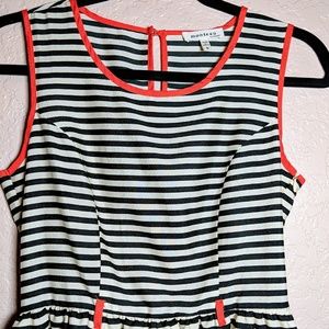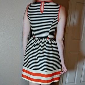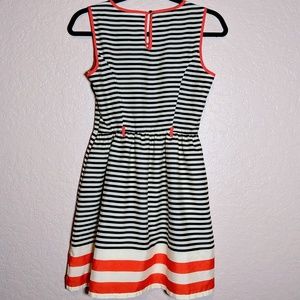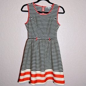 Monteau Los Angeles striped sleeveless dress. Size small. Eyelet button closure at the neck and zipper side closure. It has belt loops but there is no belt that comes with it. Pre-owned item in great condition.