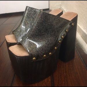 Sexy 90’s Jeffery Campbell Platforms. Wooden sole , gently used. Purchased from another Posher, but unfortunately these beauties are a little too big for me. Wooden heel.