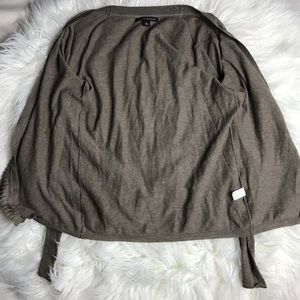 Beautiful, soft and lightweight, this cardigan by Banana Republic is made of 100% high quality puma cotton. The color is a lovely blend of browns and oatmeal- see last pic collage for a close-up view. V-neck, featuring contrast, bi-colored ruffle trim down the front. Such a great closet staple!