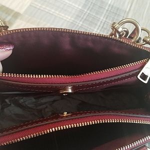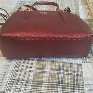Gorgeous new with tags, Coach Madison Christie, metallic cherry red color with gold hardware and bonus keychain. Bag has 2 zippered compartments, center has button closure with a interior pocket that snaps shut. No dust bag included.