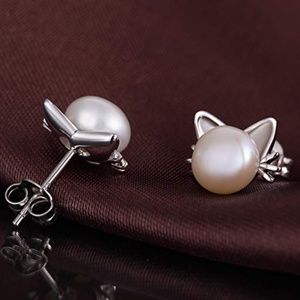 Cat Pearl Earrings Stud
