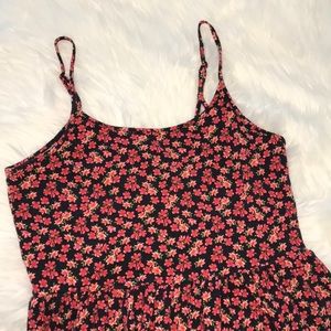 Red and black floral dress. Non-see-through opaque stretchy material. 28in in length. Perfect Condition.