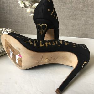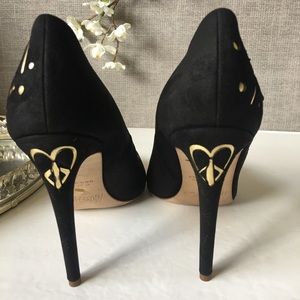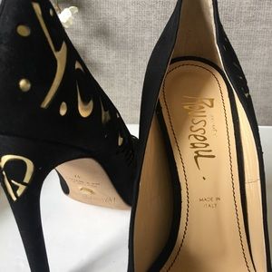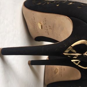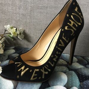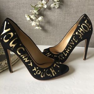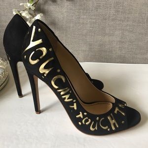 Sizing: Reference size chart for European conversion. - Open toe - Contrast construction - Cutout detail - "You Can't Touch This" - Slip-on - Lightly padded footbed - Slim high heel - Approx. 4.5" heel - Made in Italy