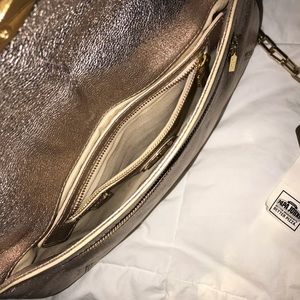 Authentic Tory Burch Gold/beige cross body/clutch. Has some scratches on the front symbol. Otherwise in good condition