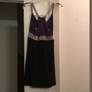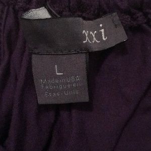xxi size large dress and/or tunic...a versatile item (my daughter wore it as a dress and as a tunic w/ leggings) eggplant purple on top, grey looking sash and black on bottom