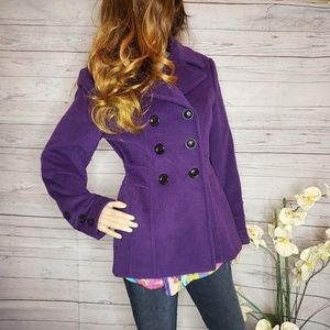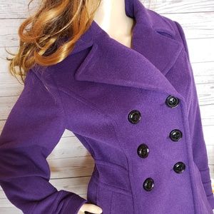 St John's bay wool cashmere blend double breasted peacoat size small in a pretty purple color with black buttons. Extra buttons on the inside. Perfect for a cold winter. 2 pockets.