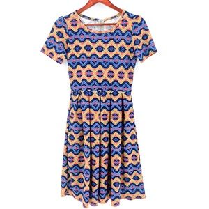 LuLaRoe Amelia Tan & Blue Aztec Short Sleeve Dress