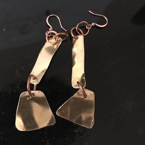 Tribal Brass Copper Earrings Drop Dangle Handmade Primitive Festival Bohemian