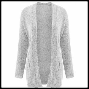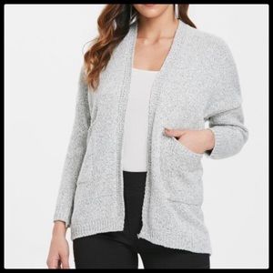 Long Sleeve Gray Knit Cardigan, open front with 2 pockets. Soft and warm / Brand new- never worn- measurements are flat lay and approx: