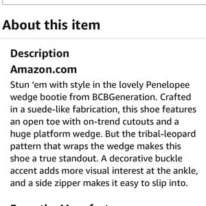 These wedges are eye catching and add personality to your outfit. Worn a couple times and always received compliments. Box says 7.5 but shoes are a size 6.5. Box included. See last pic for small rub on outside of right shoe. Hardly noticeable. I purchased shoes on sale for $60.
