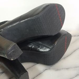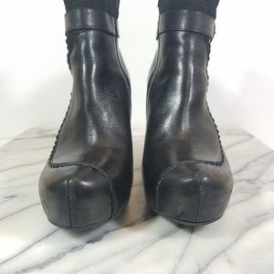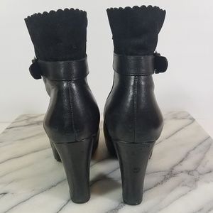 Miz Mooz Liv Black Leather Platform Heeled Bootie Scalloped Size 10