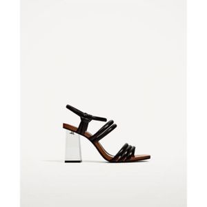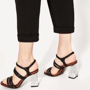 Zara Woman Black Leather with Methacrylate Heel Sandals