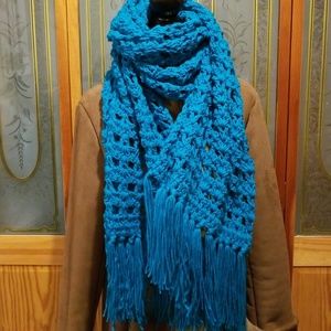 Beautiful scarf with shell stitching and long fringes. Very attractive and warm. Can be used as a scarf or a wrap over a dress or however you feel like styling it !!!