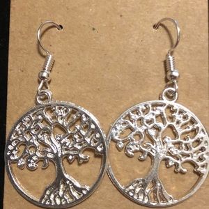 Silver Plated Tree of Life Earrings. Fishhook Earrings Post.
