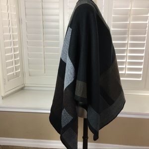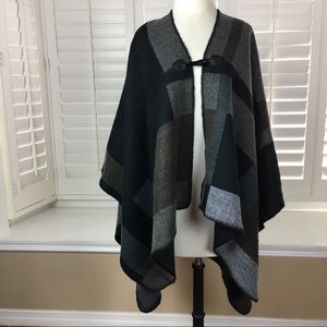 Steve Madden Black Gray Brown Plaid Cape Poncho Coat S M L One Size Lagenlook