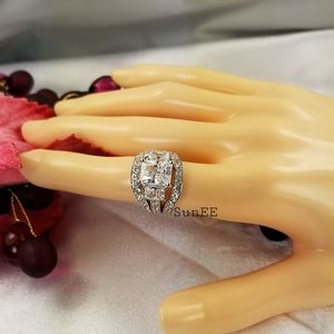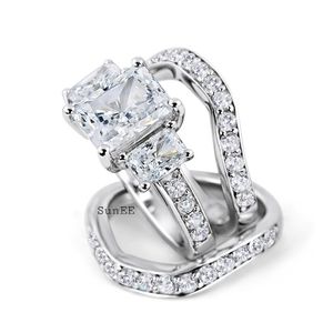 NEW WOMENS 925 STERLING SILVER RADIANT CUT WEDDING RINGS ENGAGEMENT RINGS