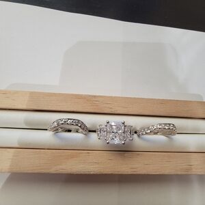 "3pcs Emerald Cut Wedding Engagement Ring Set" Main stone is about 3.8ct