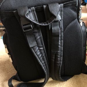 This specially designed backpack from Fisher-Price lets you find what you need when baby needs it! Fastfinder pockets keep diapers, bottles, and pacifiers close to hand. The built-in wipes case is a snap. The padded mesh back and contoured, adjustable shoulder straps make carrying comfy.