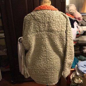 NWT Sherpa grey w/ burnt orange collar 3/4 zip also has pockets on each side.