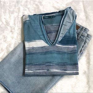 Prana V-Neck Hooded Long Sleeve Striped Top S