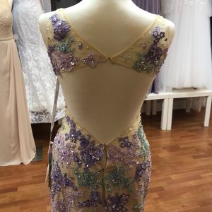 ✔️ Nude-lilac-mint prom dress with rhinestones