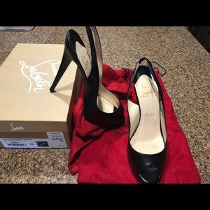 Authentic Louboutin Red Bottoms for Christmas 🎄Great condition, only worn a few times. Size 9. There is a small scuff at the heal as shown in the closeup pic. The red soles reflect slight wear which is to be expected. PLEASE examine each photo closely, if you have any questions feel free to ask. Have a great day.