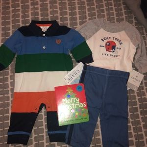 3 baby outfits 3 months - Elf size is 6 months and two Christmas books