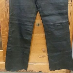 John paul richard leather pants. NWOT. Lined. Unfinished hem. My mom purchased and never finished alterations on the hem. Waist 14 inches, inseam at crotch 10 1/2 inches, length 30 1/2 inches. Real leather pants in excellent condition!
