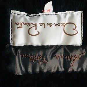 This is an amazing vintage leather topcoat. Not sure if the lining is mink or synthetic fur. It’s very warm. It looks great and is a definite statement. It is marked size 10. It measures 24” between the armpits and 35” from the bottom of the color down the middle of the back. The leather is very soft.