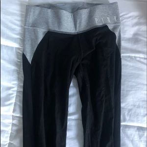Lightly worn black leggings by the brand pink with a gray band