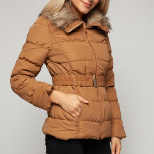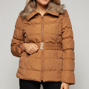 CAMEL LONG SLEEVES FUR JACKET WITH ZIPPER CLOSER POCKET AND WAIST BAND