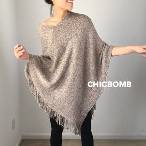 Woven sweeping fringes ups the cozy factor for a layer able poncho.A touch of fringes tassel adds flair to the poncho styled in classic hues with v neckline.