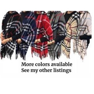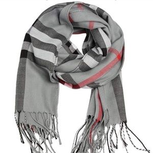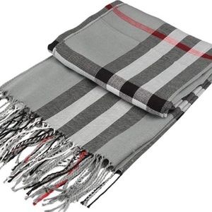 NEW Gray classic plaid large check scarf with fringe ends, 100% soft acrylic. Dimensions: 76” L x 12” W