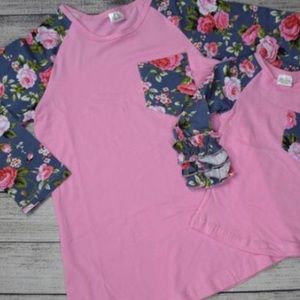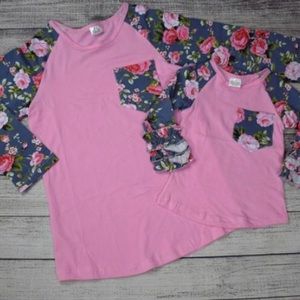 @poshlove100 OK ma’am so you want measurements for a medium and a large in the pink and gray floral in the mommy and me a shirt. You would also like the measurements the same for the American flag tea? Would you also like a size 8 in the flag tee? It will be later on this evening but I will definitely get it to you