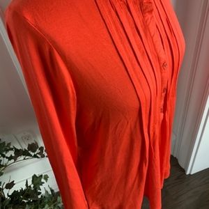 Joseph A NWT Women's Pleated Detail Knit Top/Bright Orange/Long Sleeves/ Size M/Nehru Collar/Very Flattering on FIgure/Fitted at Top yet a slight swing with pleats/New with Tags/MINT CONDITION