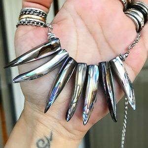 πFREE GIFT WITH EVERY PURCHASE OVER $25 πBoho / tribal / neo tribal / horn necklace / Abalone necklace / steel necklace / natural stone necklace / gypsy / bohemian / bohochic / silver necklace / women gift / choker / statement necklace / Handmade by me π Genuine abalone shell horn choker necklace . 18 inch stainless steel chain ( If you need a different size chain just lmk ! ) I ship fast!!π Bundle & save ! Any questions lmk !
