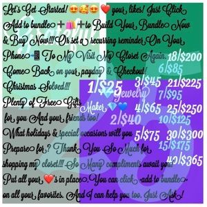 @kjo1234 No, you CAN bundle all your likes from my closet to receive a private offer. It drives me bonkers when people pay for shipping twice on separate jewelry items. A lot of ladies donโt know how to bundle. And certainly not everyone would assume I send out awesome private offers on bundles. So I let people know. Thatโs All. Hope that helps!!! ; ) ๐