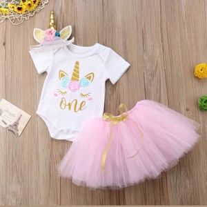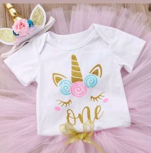 New Unicorn Baby Girl 1st Birthday 3 piece outfit