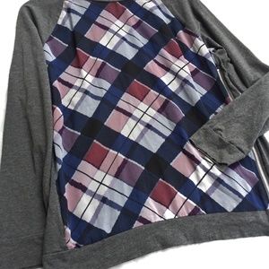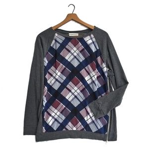 {Two by Vince Camuto}Plaid Exposed Zip Knit Top