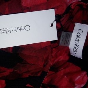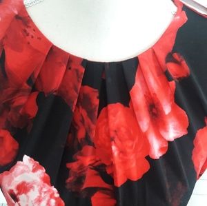 NWT Classy⚘⚘ Calvin Klein sleeveless top with red flowers on it, a bottom on top of back and pleading in the front. This is Great for the holidays and to wear simply with jeans💄💄