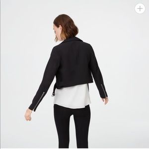 Not just for leather. The moto softens up—and feels a little bit less expected—in a lighter weight fabric. In a versatile black that works with everything.