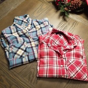 2 Aeropostale flannels. Size S. The blue/green one is a little heavier than the reddish one.