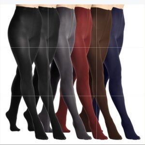 These fall/ winter weight tights are ultra opaque with a thermal knit and brushed interior designed to hold in your warmth. They are not fleece lined, instead they are an ultra opaque knit of 80% Nylon and 20% Spandex.