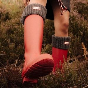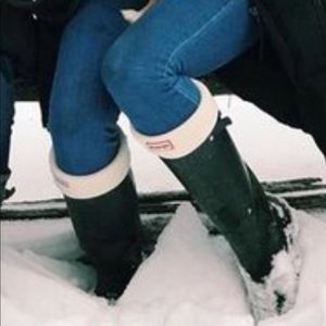 Super Cute Hunter Boot Socks! For your Original Tall Hunter Boots! Size L. See last Picture for information on sizing! Dark Grey Sock with Black, Grey, & White Pattern Cuff! Two pictures are stock pictures to show how Socks fit on Hunter Boots!