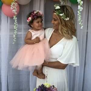I bought two! A 18m and 2t, the 2t is worn but still brand new she wore for 2 hours and 18m still in packaging. Color is a little bit peachy but still pink!