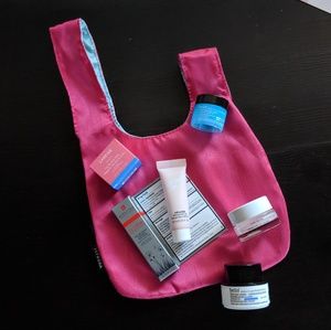 - Pink Satin wristlet (loop smaller handle over larger and slip on wrist)
