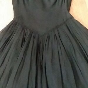 This cute dress is fully lined. It is fitted at the waist with lace trim. It has lace trim around the sleeves. The dress has zipper on the back. The hem of this dress is almost 3 inches deep. This has a satin lining.