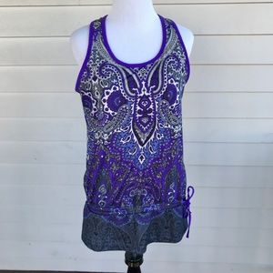 Athleta Purple Paisley Tank Top Criss Cross Back