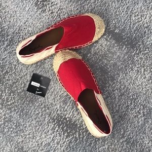 @sangel3346 hi there! Thanks for looking at these babies! These are espadrilles and unlike leather plastic or silicone espadrilles are generally made with a woven jute fiber which make them inflexible. These are a jute top edge and base, the rest is a red canvas material.