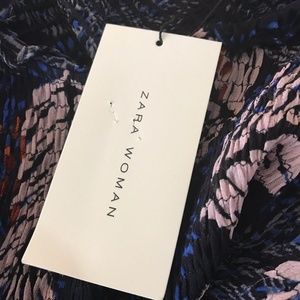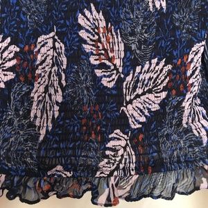 Zara Feather Print Sheer Shirred Blouse Crop Top